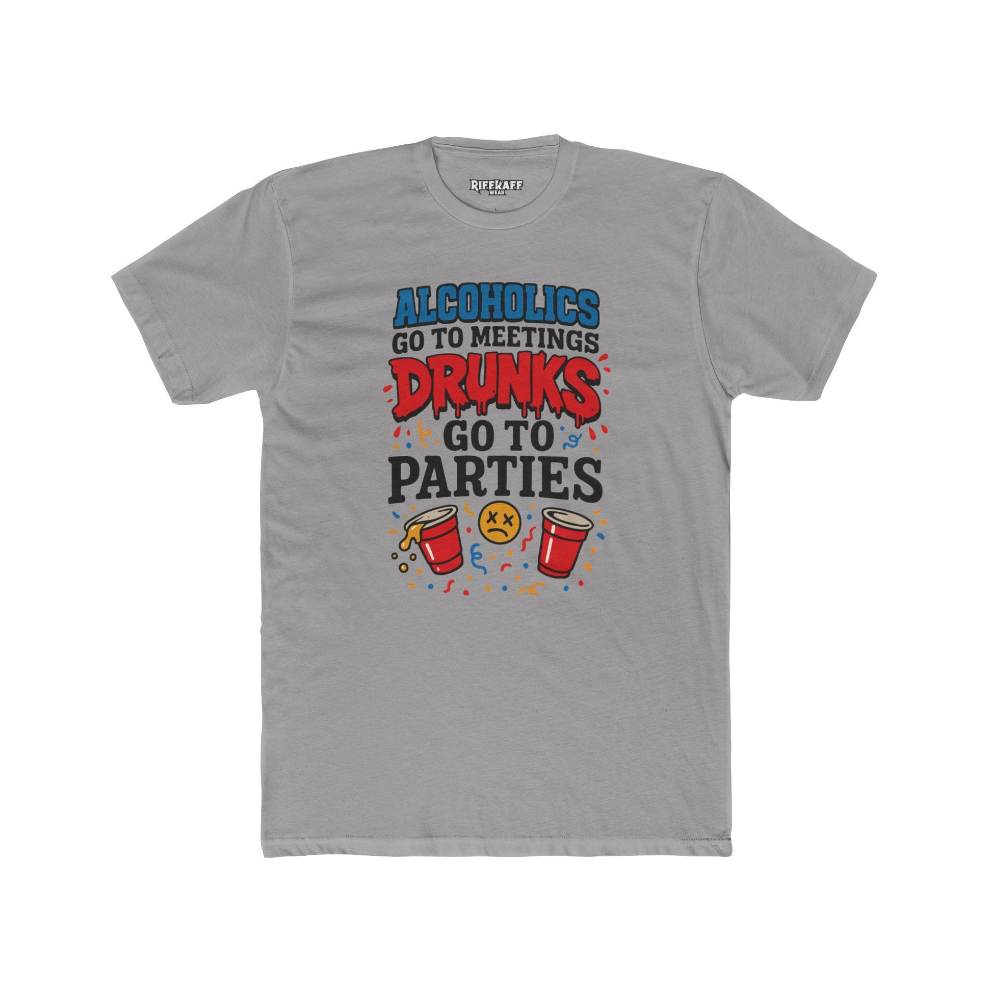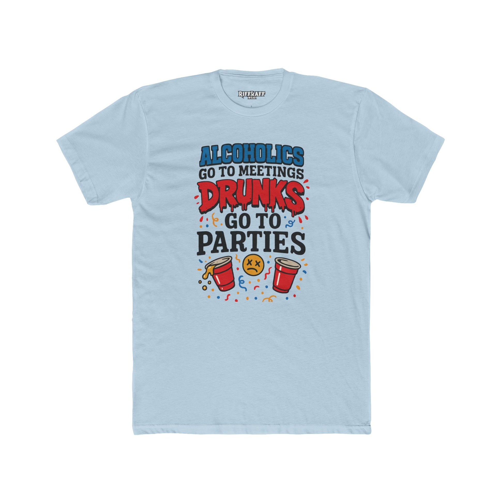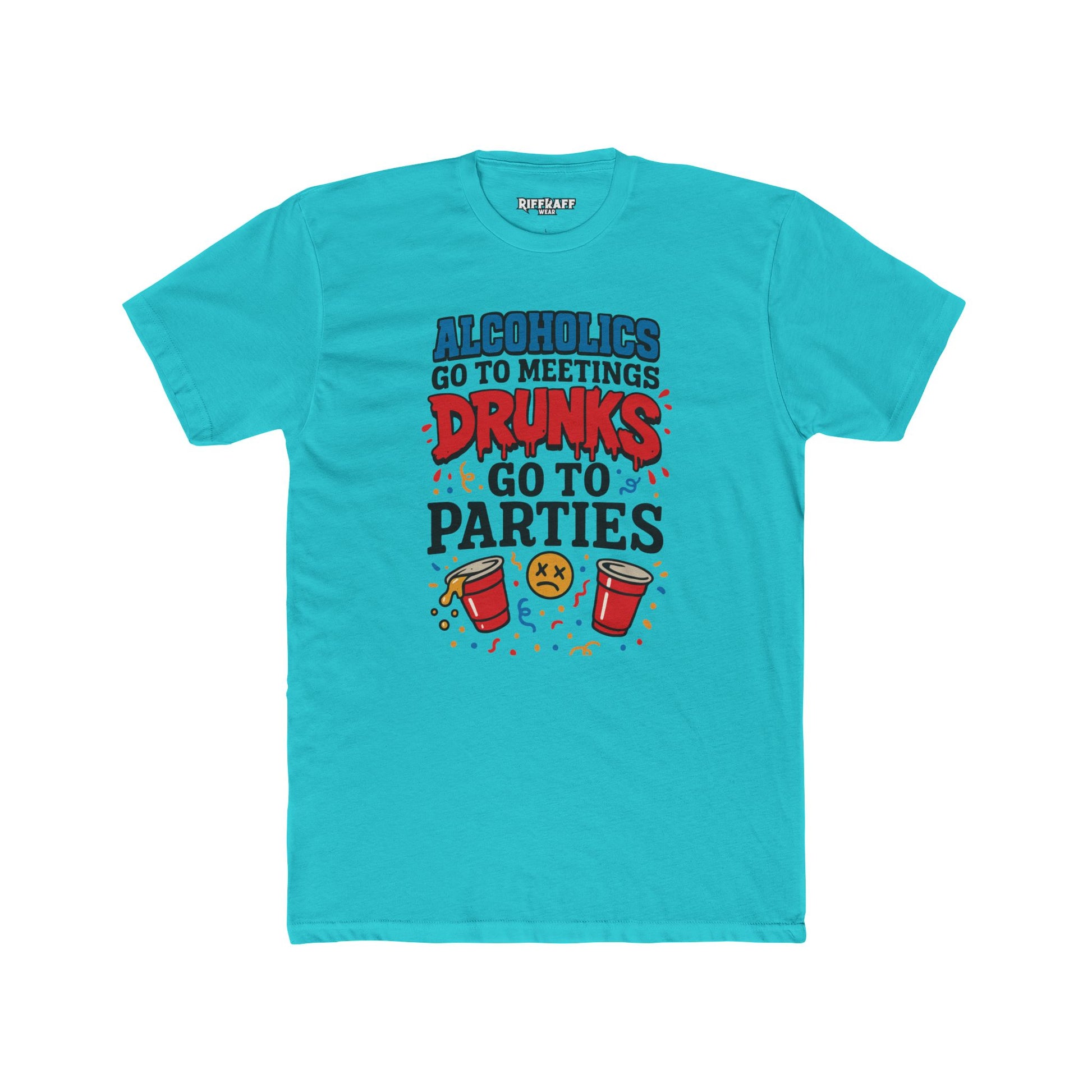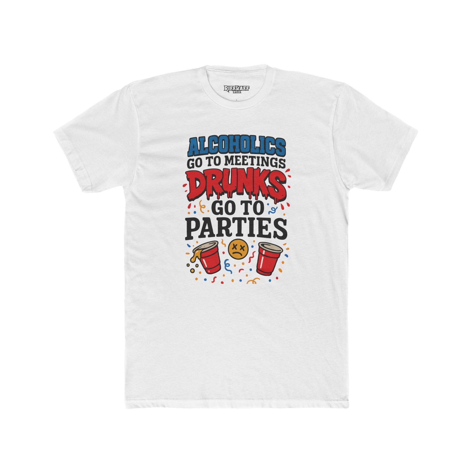 Alcoholics Go to Meetings Unisex Cotton Crew Tee - Fun Party Tee - Riff Raff Wear