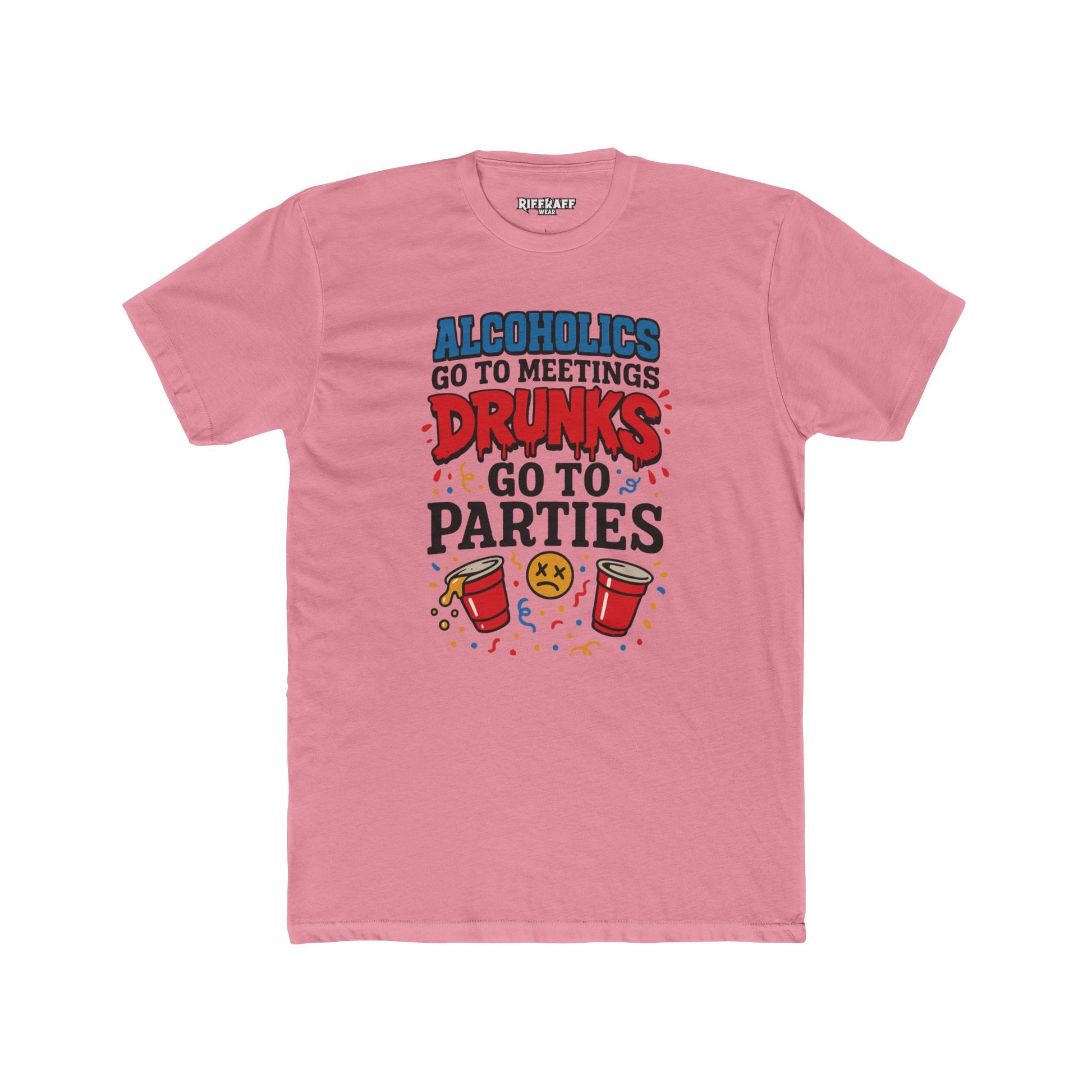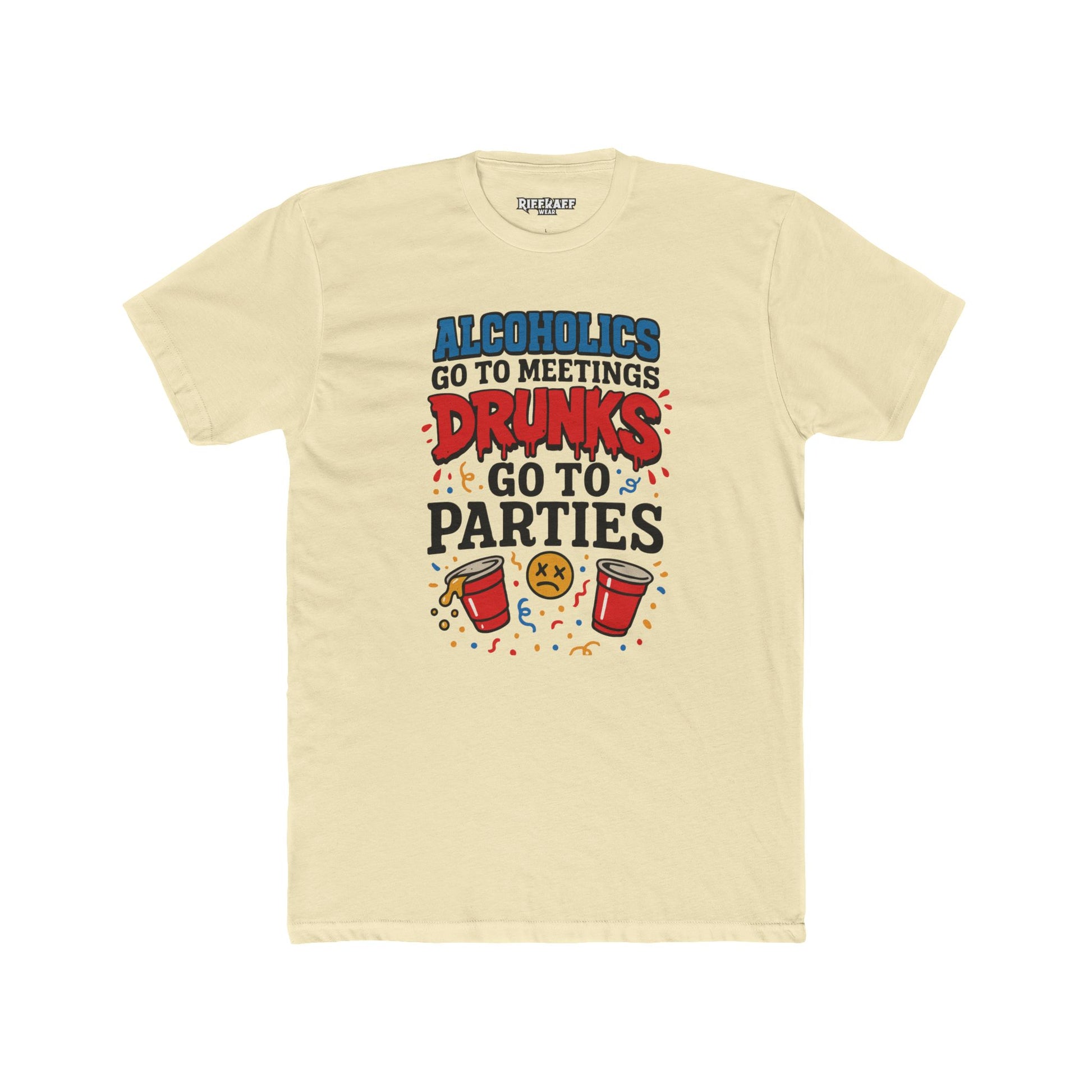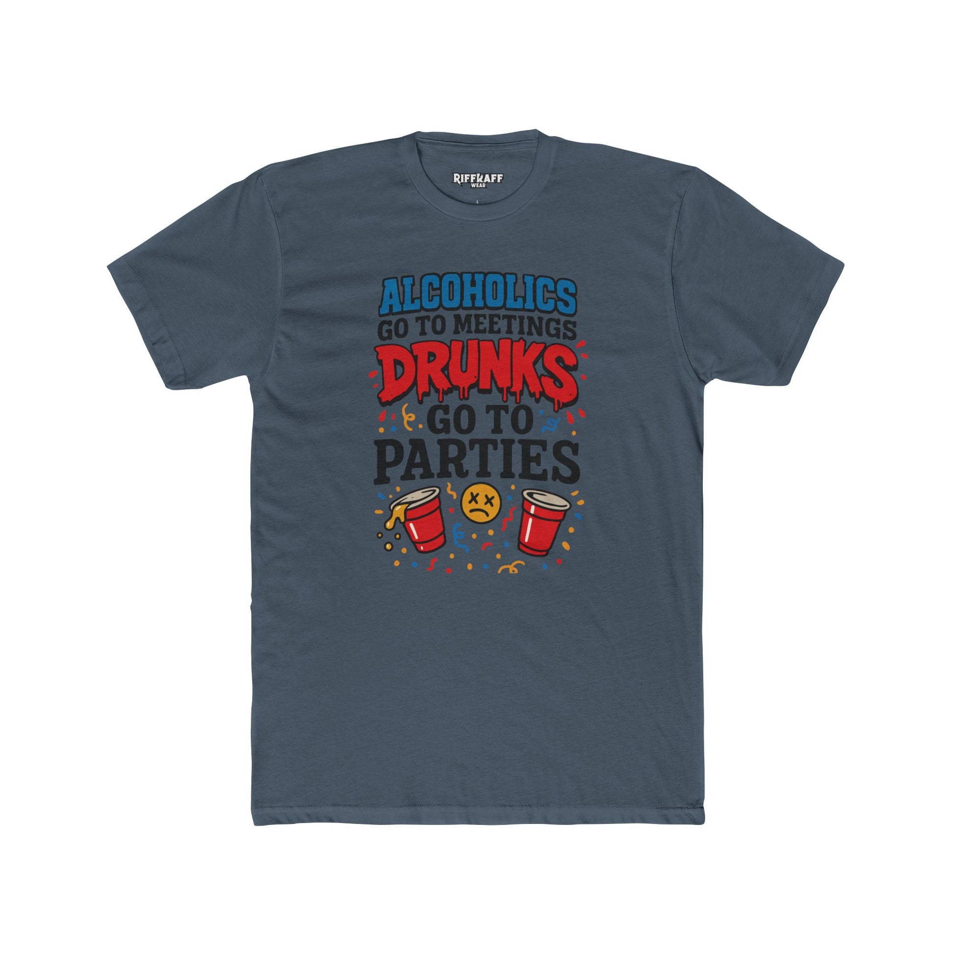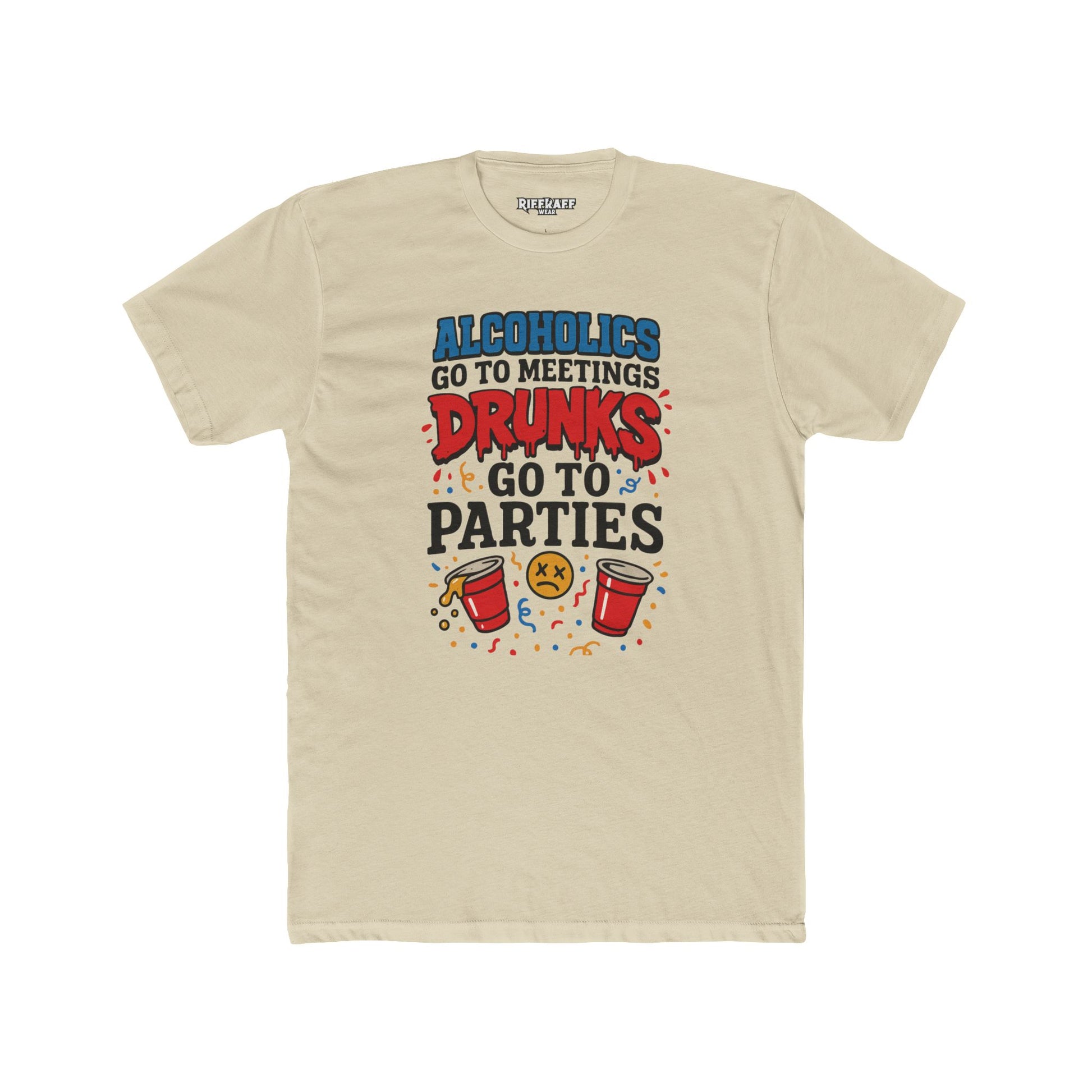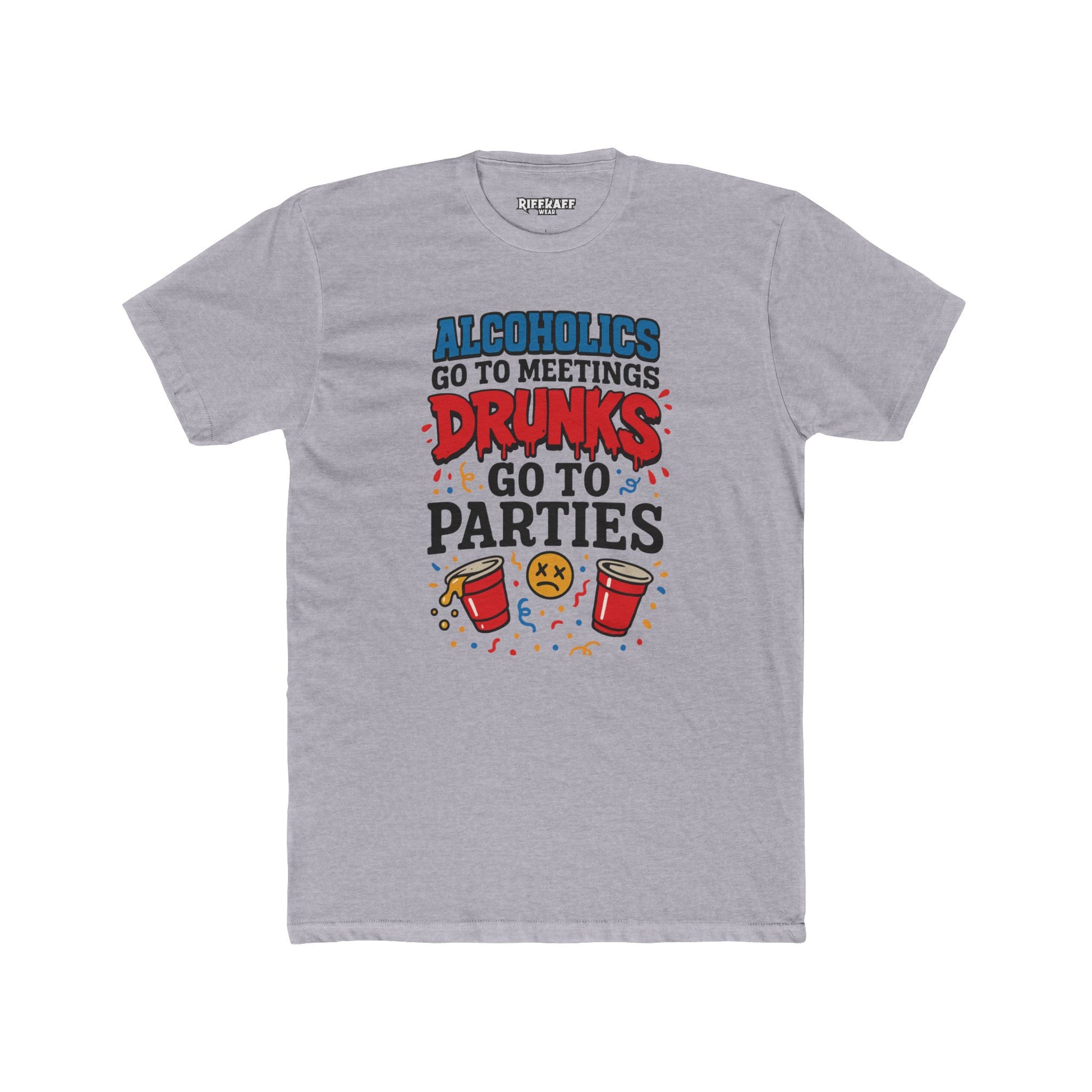 Alcoholics Go to Meetings Unisex Cotton Crew Tee - Fun Party Tee - Riff Raff Wear