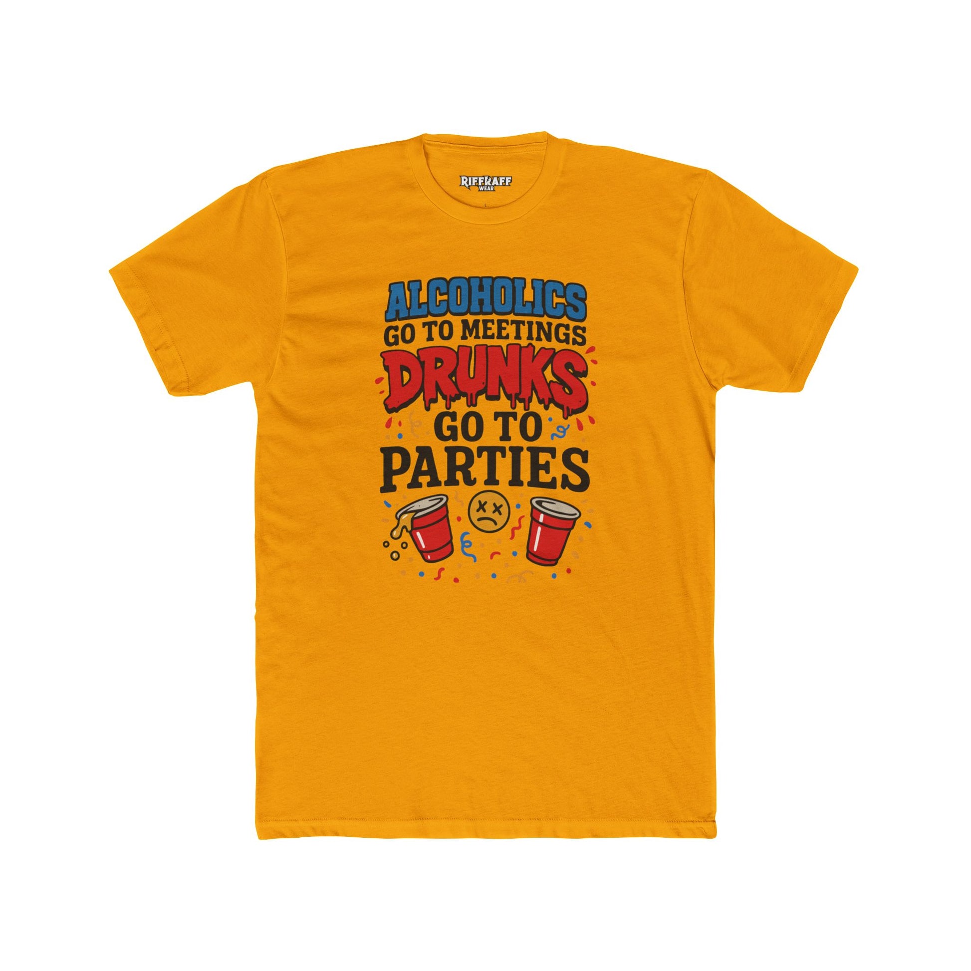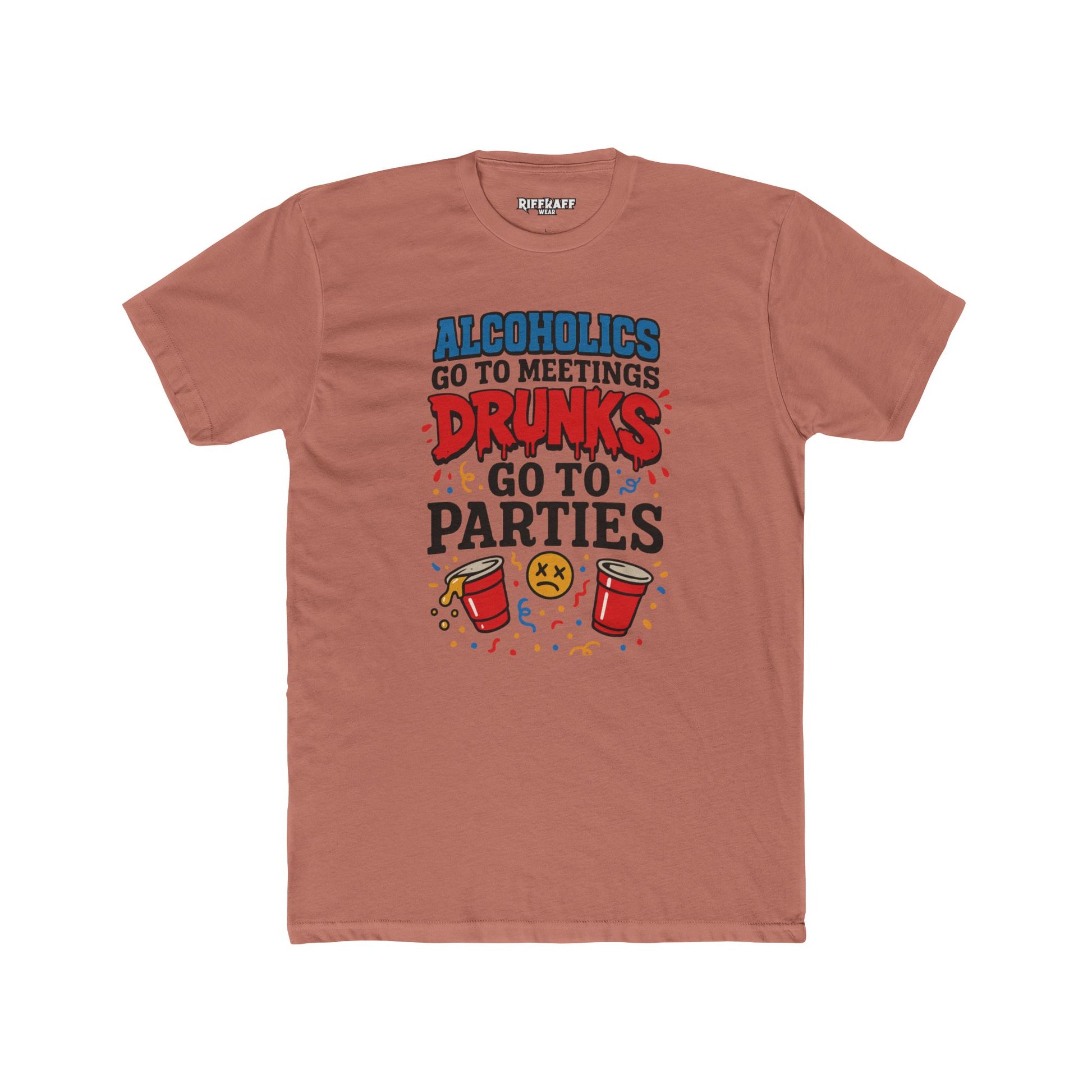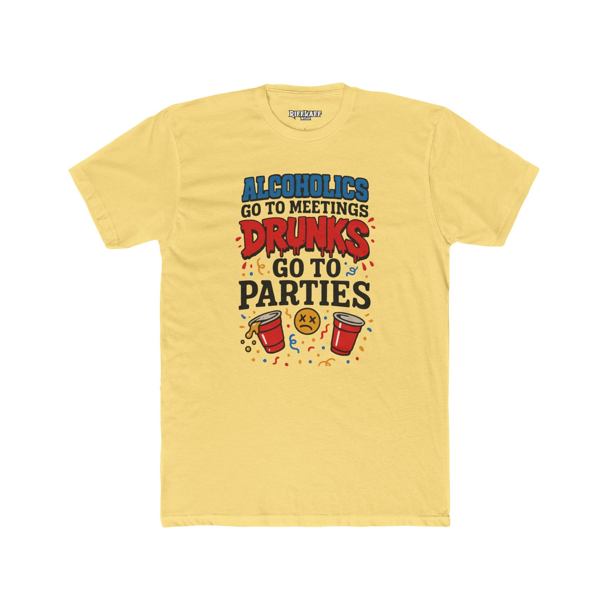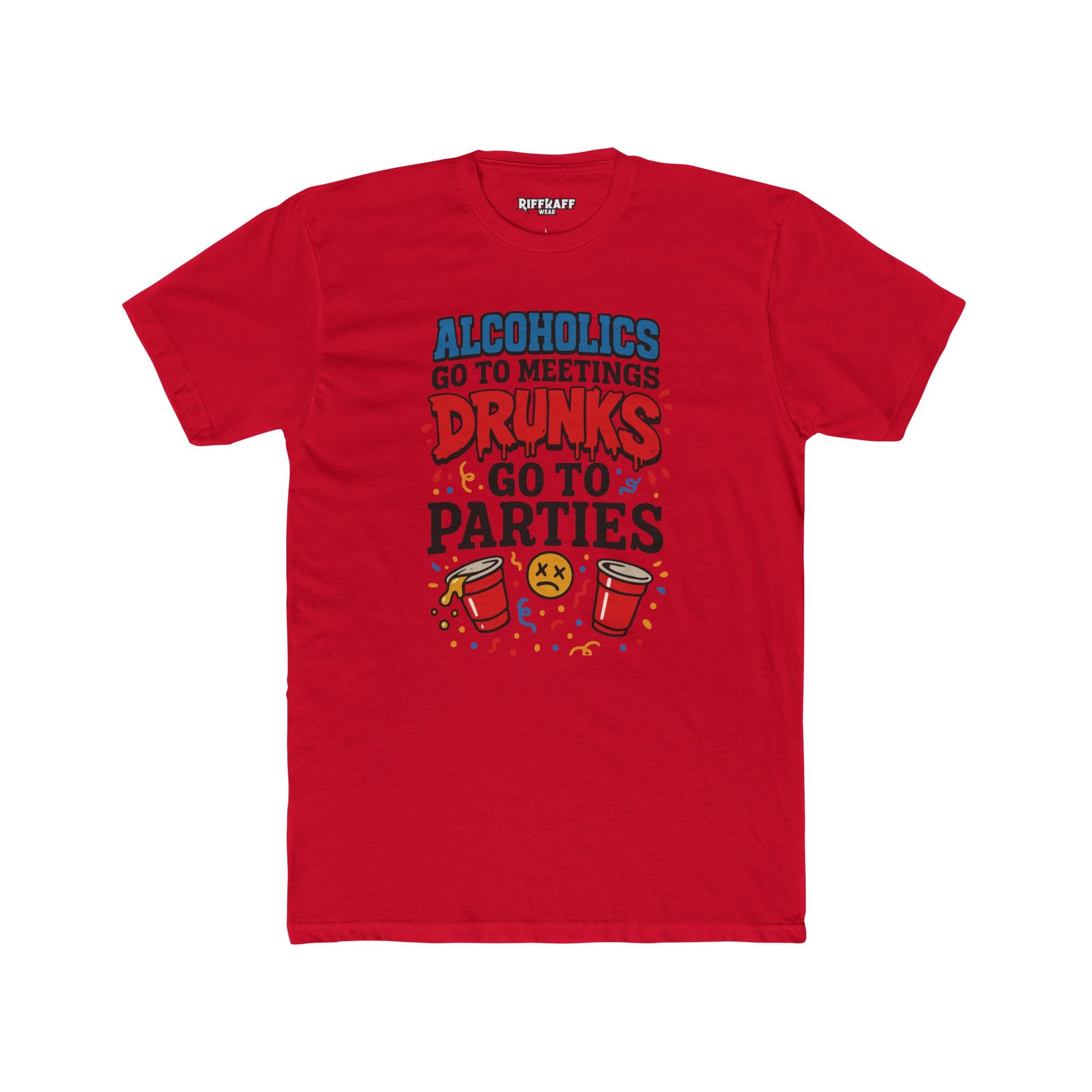 Alcoholics Go to Meetings Unisex Cotton Crew Tee - Fun Party Tee - Riff Raff Wear