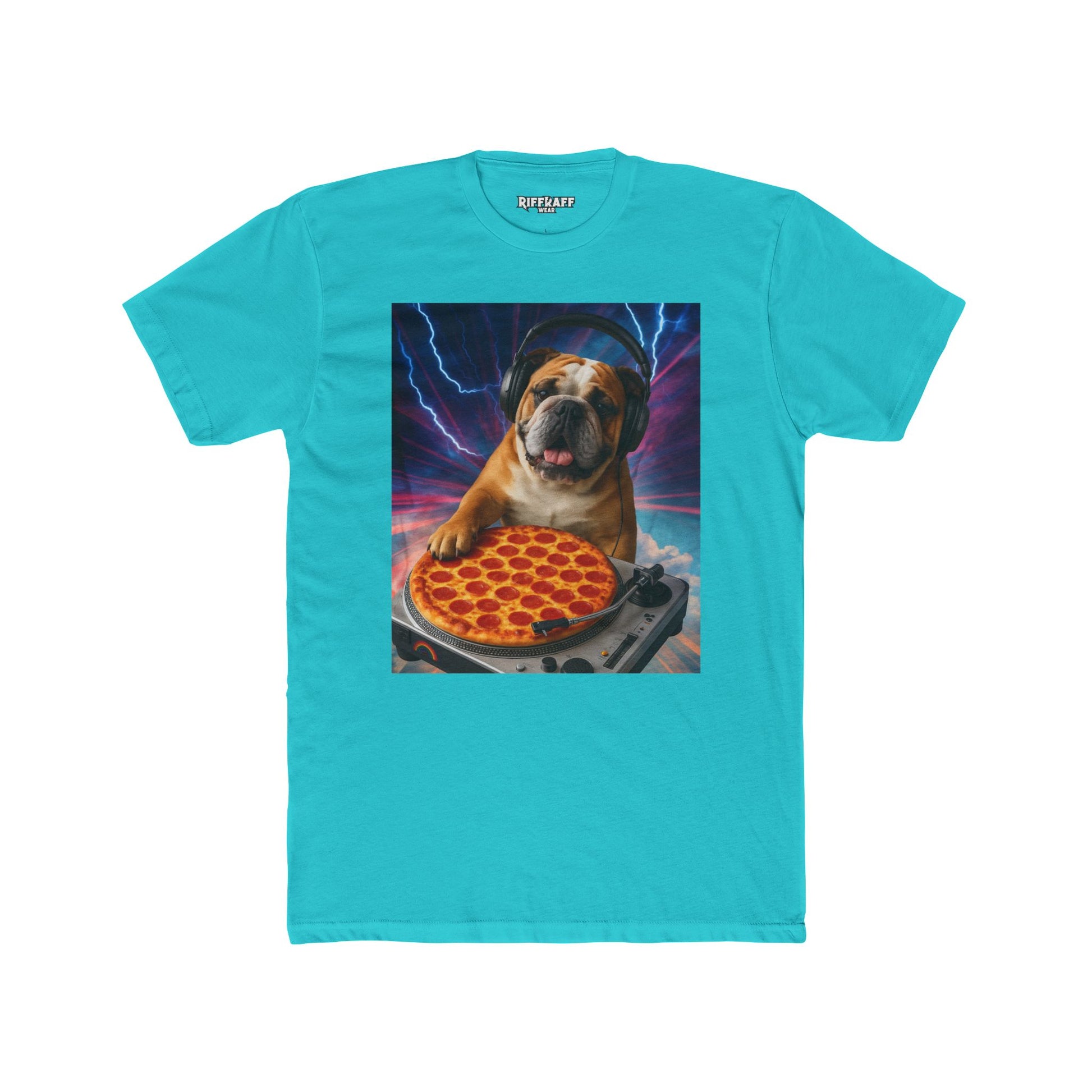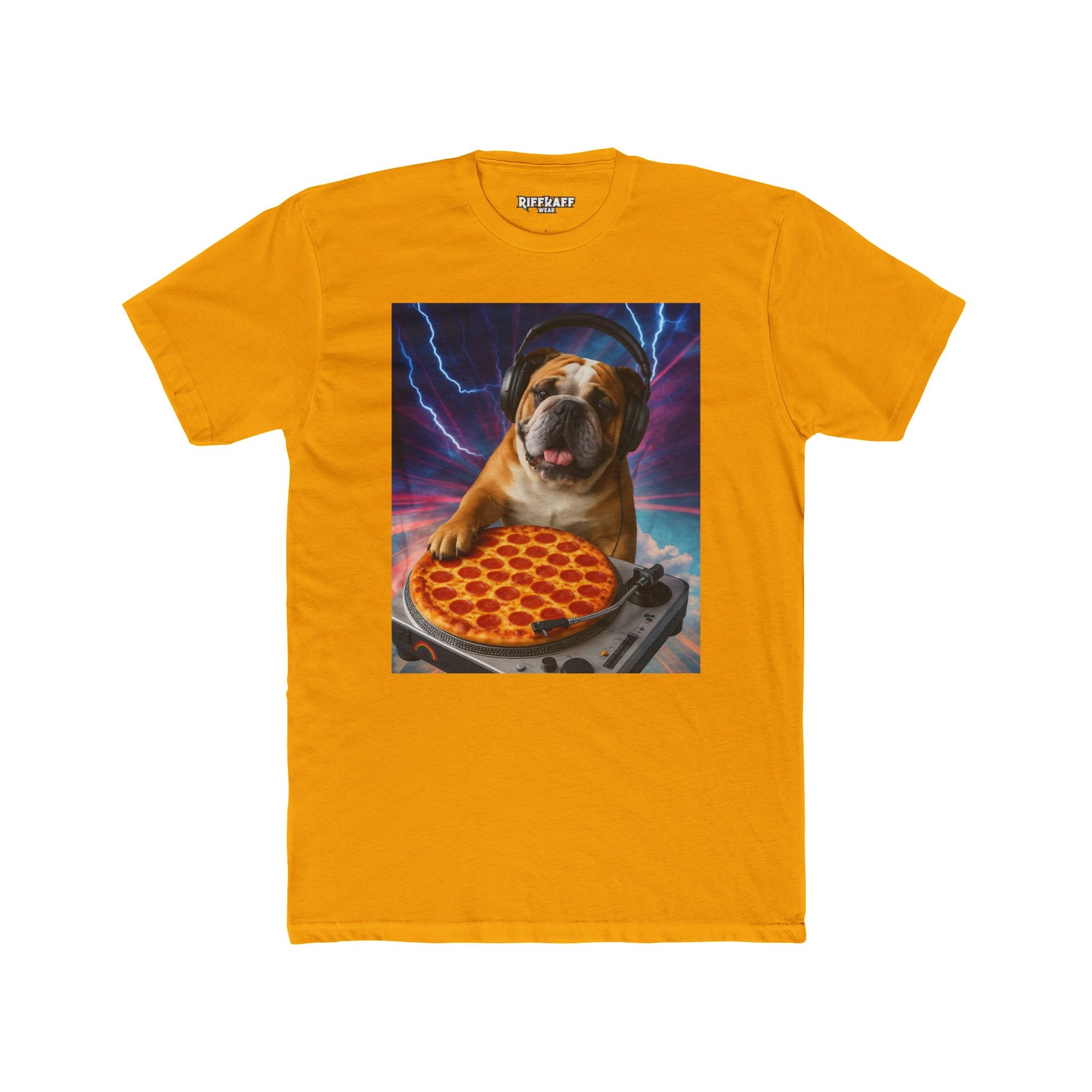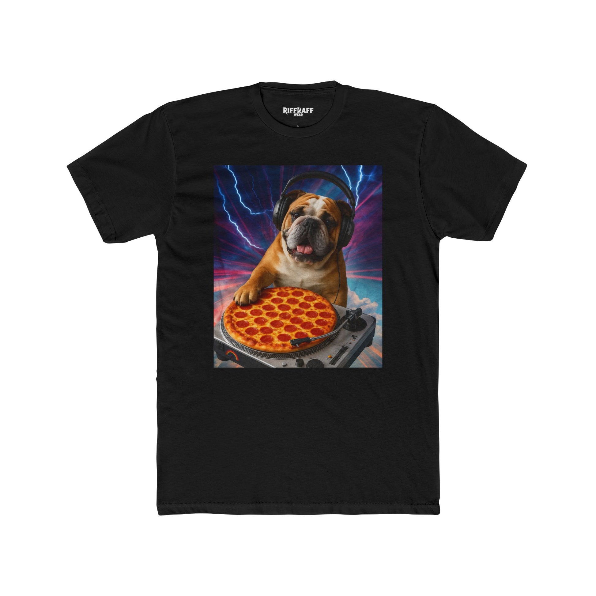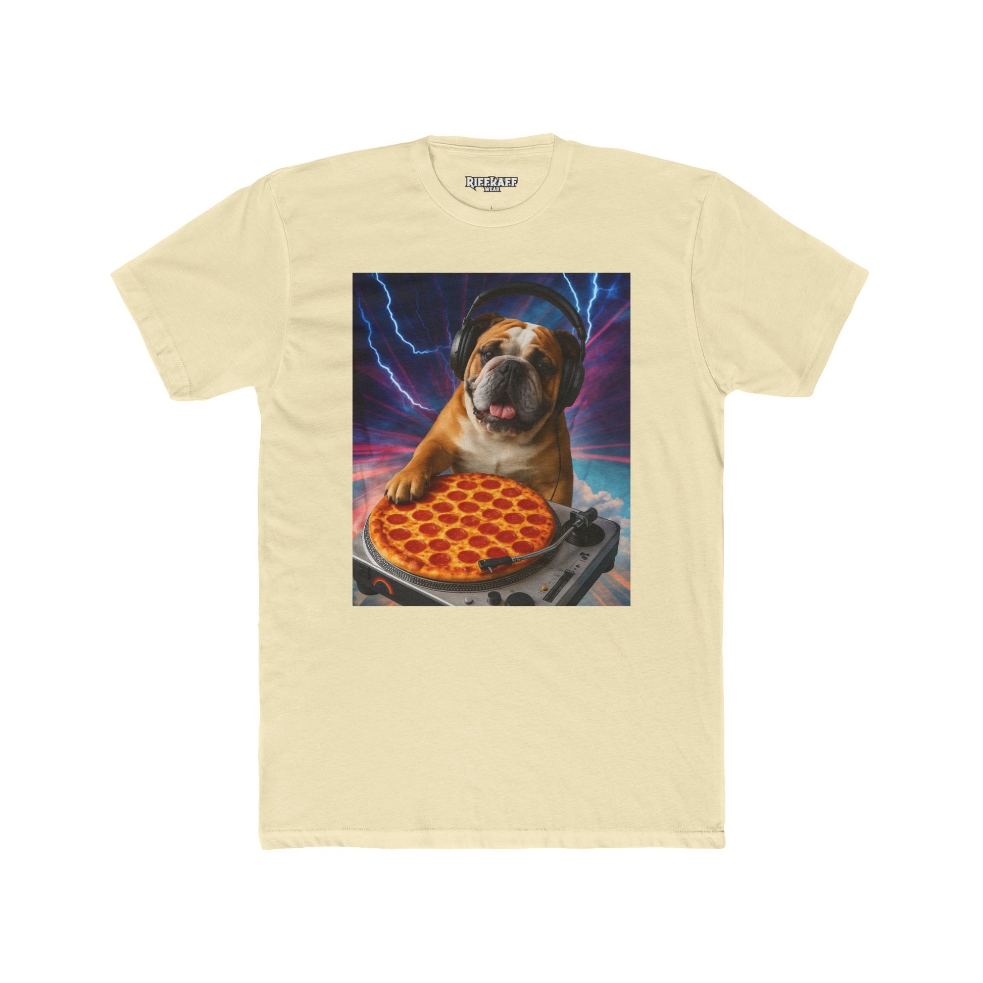 Funny DJ Dog Pizza Unisex Cotton Crew Tee - Riff Raff Wear