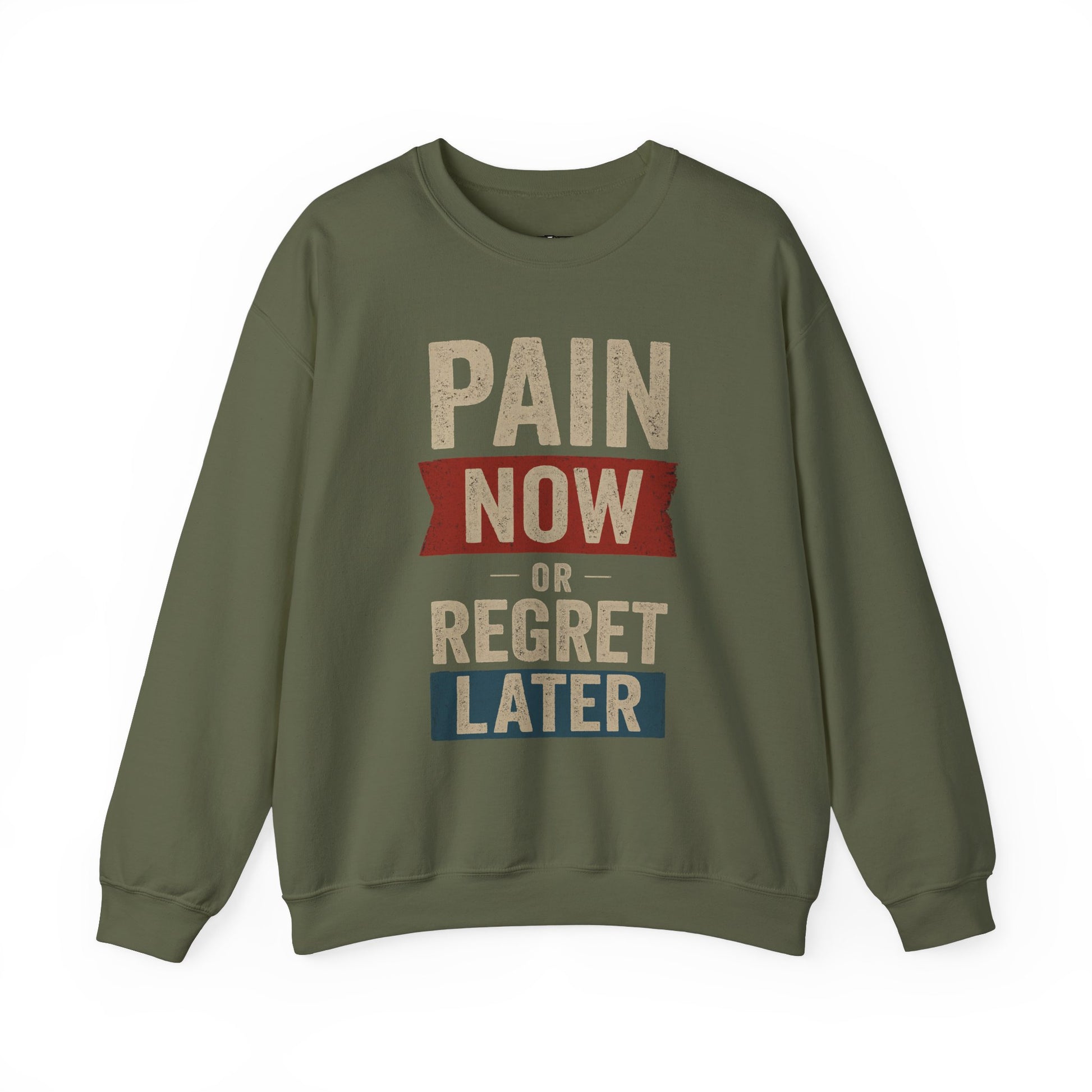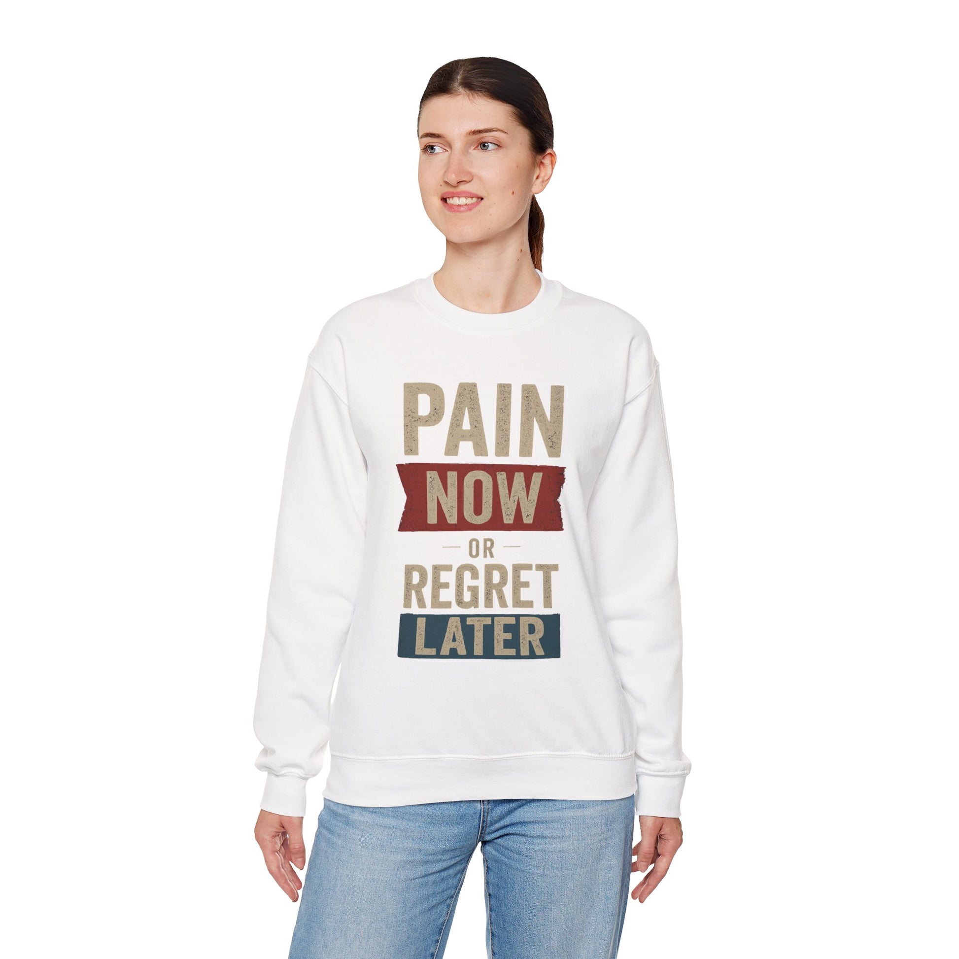 Inspirational Crewneck Sweatshirt - "Pain Now or Regret Later" - Riff Raff Wear