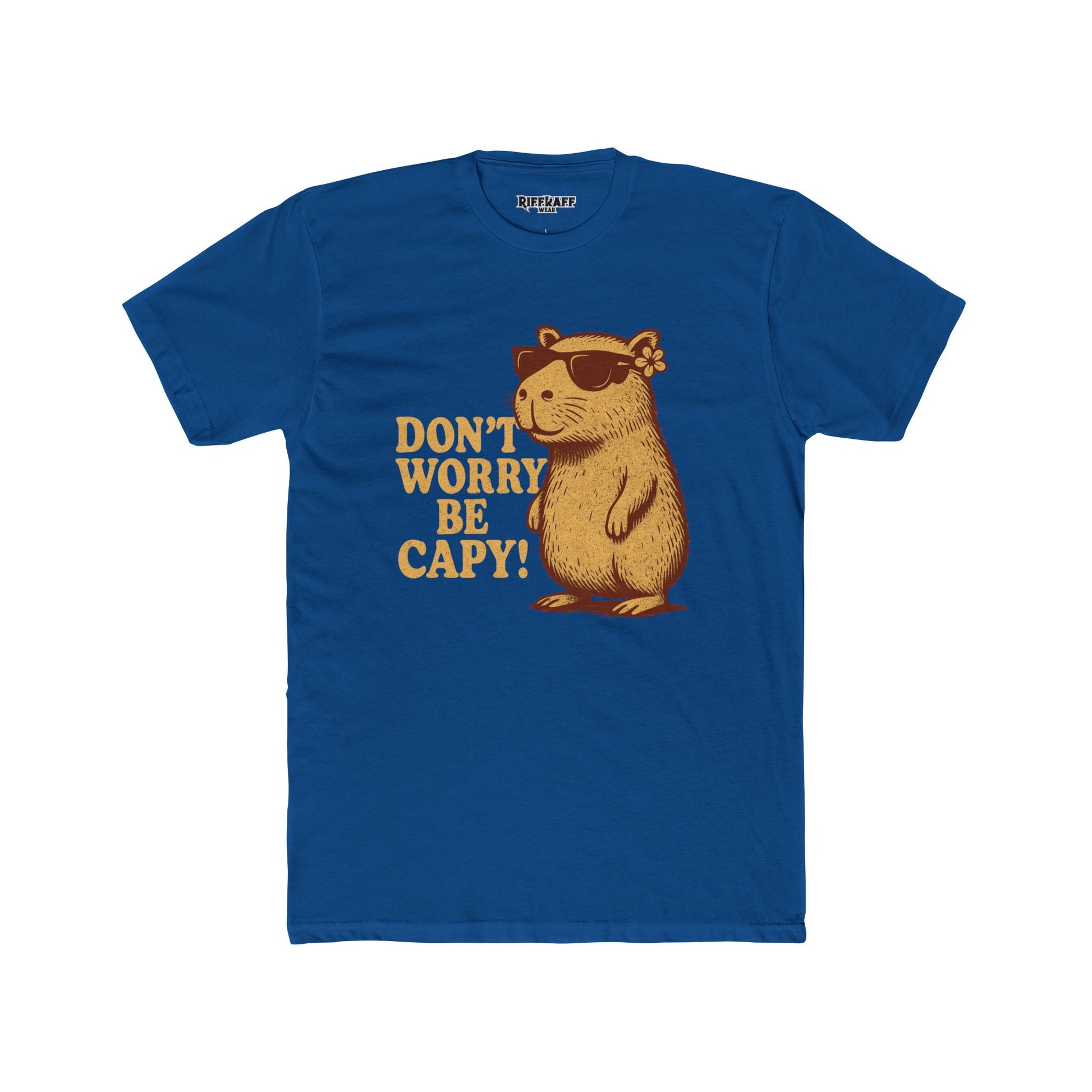 Unisex Cotton Crew Tee - Don't Worry Be Capy! Funny Animal - Riff Raff Wear